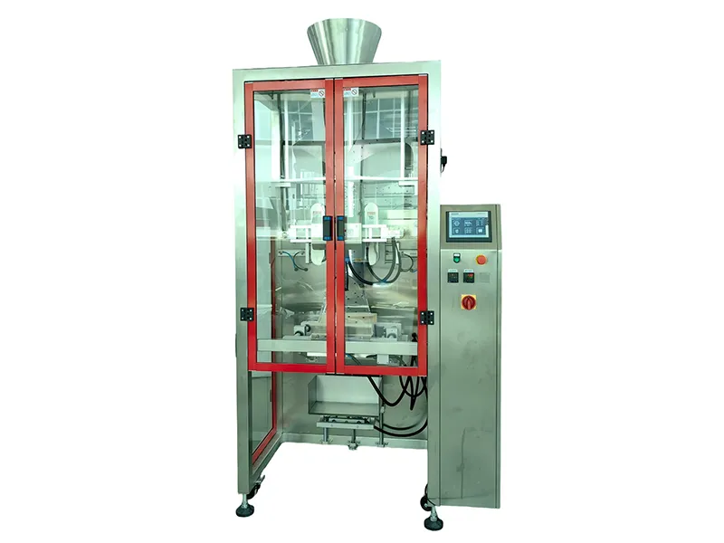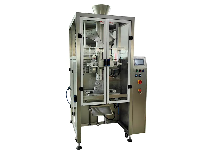The VFFS Packaging Machine for large bags is a bag filling and sealing system that automates the process of bag feeding, metering, bag forming, back sealing, and cutting for large-capacity materials. It features servo-driven film pulling, high-sensitivity photoelectric sensors, and precise PID temperature control as well as ensures stable bag formation, pattern alignment, and secure seals.