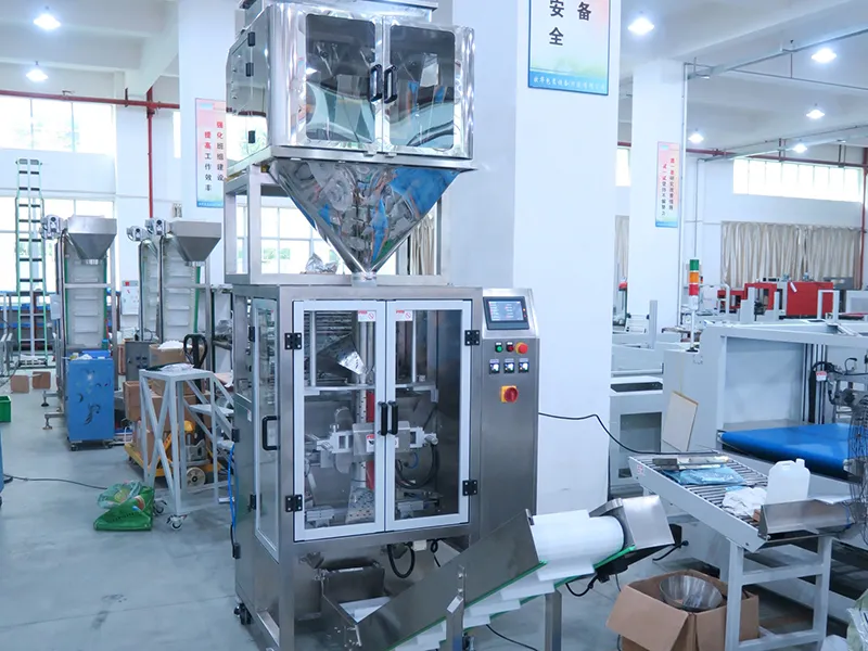 - The machine performs bag feeding, precise metering, filling, bag forming, sealing, cutting, and date printing