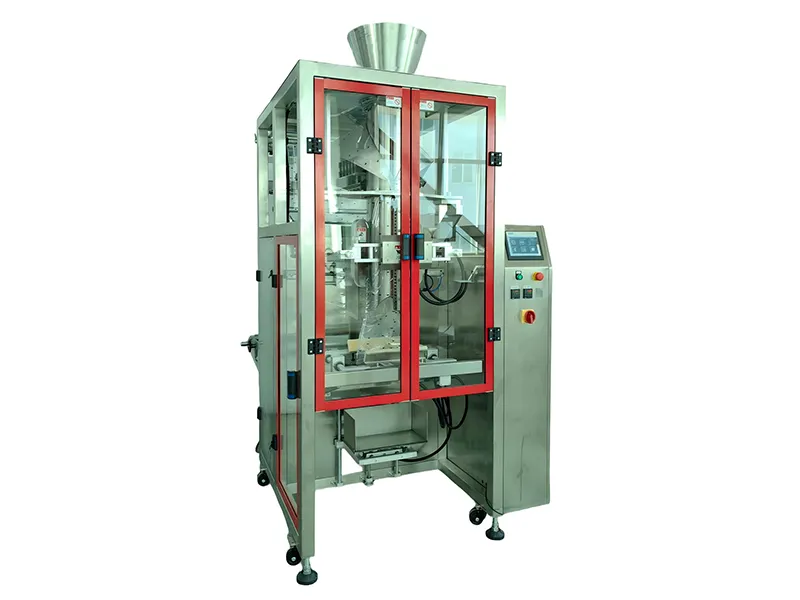 The VFFS Packaging Machine for large bags is a bag filling and sealing system that automates the process of bag feeding, metering, bag forming, back sealing, and cutting for large-capacity materials. It features servo-driven film pulling, high-sensitivity photoelectric sensors, and precise PID temperature control as well as ensures stable bag formation, pattern alignment, and secure seals.